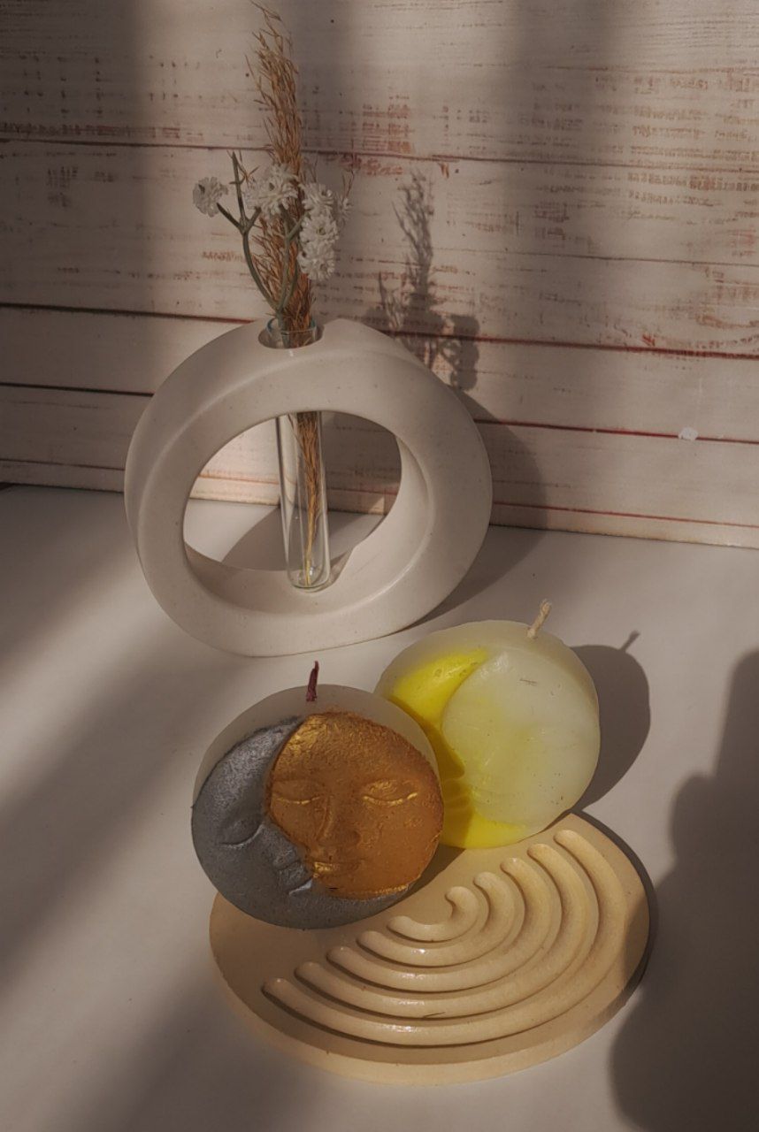 شمع ماه و خورشید ساخته شده از پارافین طبیعی ، بدون حساسیت، مناسب کادوهای مناسبتی و کاپلی و عروسی و عقد،دکور اتاق و منزل🕯